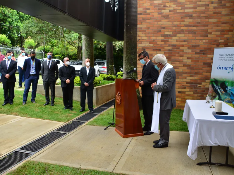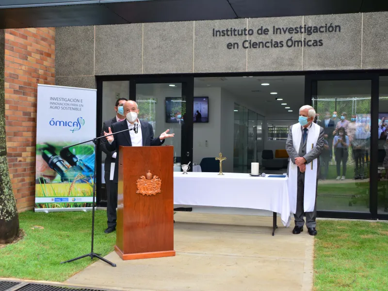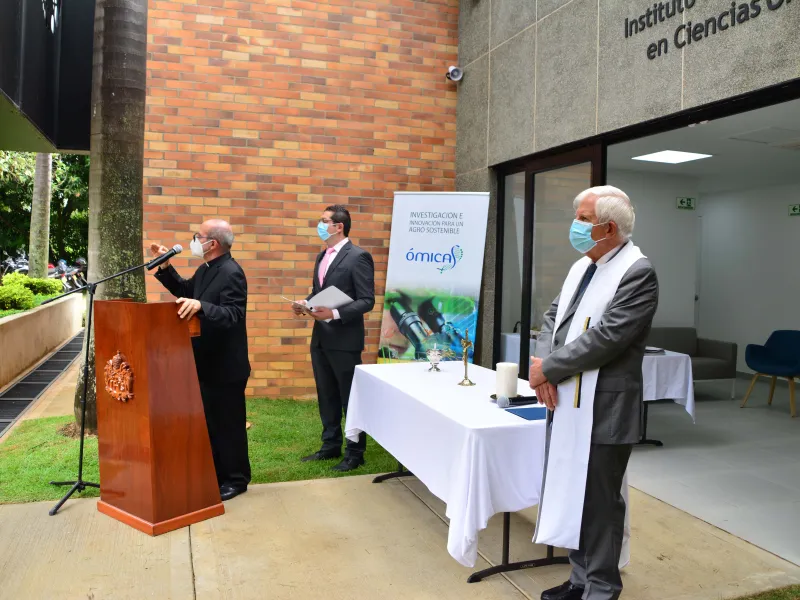 A primera hora de la mañana de este 28 de febrero se realizó el acto de bendición del Instituto de Investigación en Ciencias Ómicas, iÓmicas, que hace parte del programa de investigación Optimización Multiescala In-silico de Cultivos Agrícolas Sostenibles. Este instituto está dedicado a descubrir y promover la transferencia de conocimiento, tecnologías y productos relacionados con el mejoramiento de la salud de los organismos vivos vegetales, animales y humanos, con el objetivo de contribuir al desarrollo sostenible del país y el mundo.